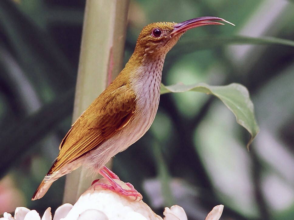Olive-yellow above with a streaked gray breast and belly. Fainter streaking that does not reach all the way to the vent, a paler belly, and a longer, more decurved bill distinguish it from slightly larger Streaky-breasted Spiderhunter. Forages actively at low and middle levels of lowland and hill forest. Produces a squeaky “tshe-yee tshe-yee!”, like wet shoes squeaking on a smooth surface.