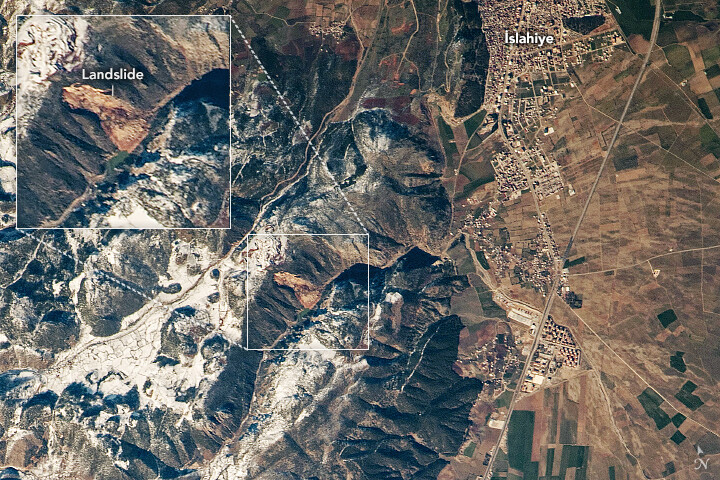 On February 14, 2023, an astronaut aboard the @Space_Station photographed a landslide in a canyon near İslahiye in southeastern Türkiye.