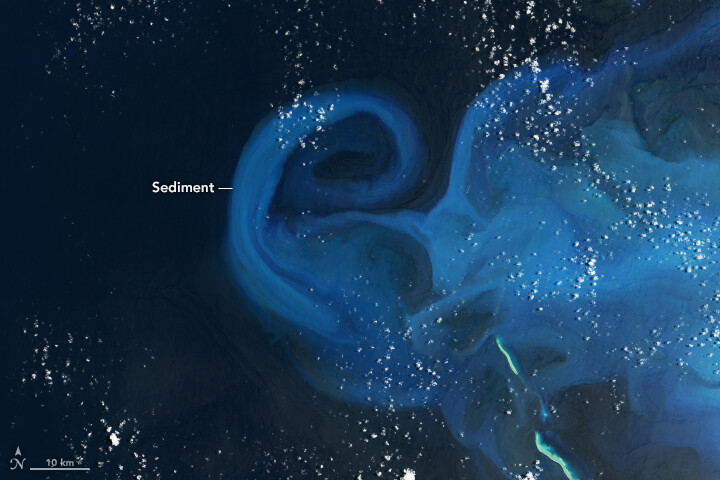 Fierce storms can dislodge carbonate sediment from shallow underwater platforms and move it into deeper waters.go.nasa.gov