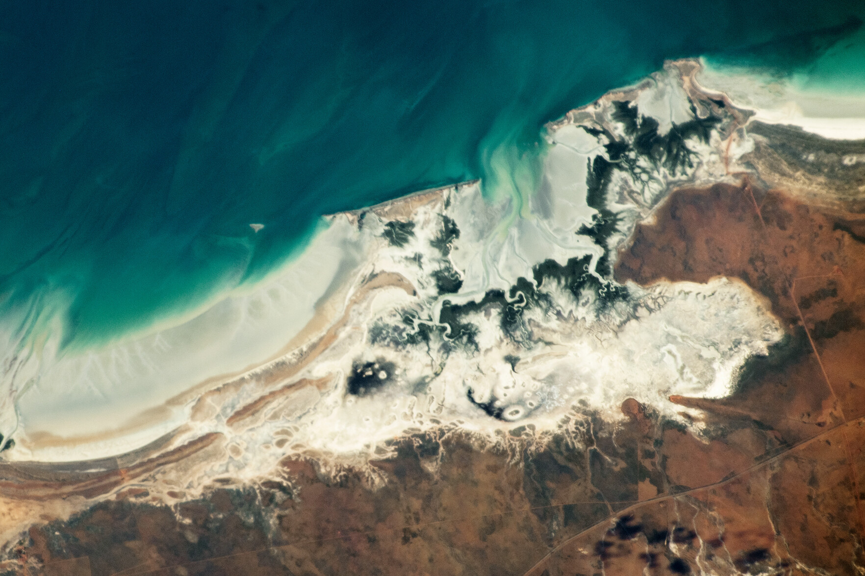 Trees along this stretch of western Australia have an elongated root system that allows them to withstand high and low tides.go.nasa.gov