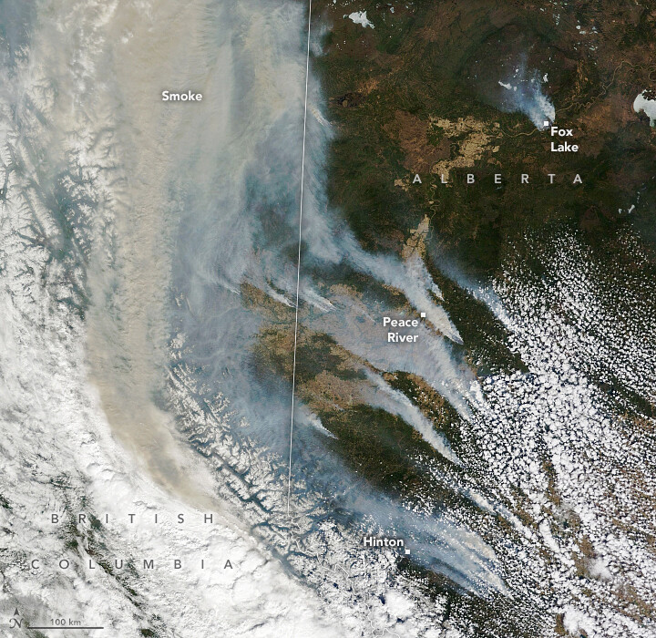 Raging fires destroyed homes in Alberta and produced towering chimneys of smoke.go.nasa.gov