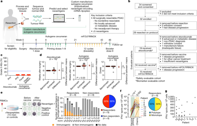 A phase I clinical trial of an adjuvant personalized mRNA neoantigen vaccine, autogene cevumeran, in patients with pancreatic ductal carcinoma demonstrates that the vaccine can induce T cell activity that may correlate with delayed recurrence of dise…Nature