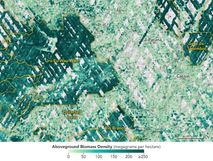 Biomass is much denser (dark green) within the protected area. More: go.nasa.gov/3ptW5RU