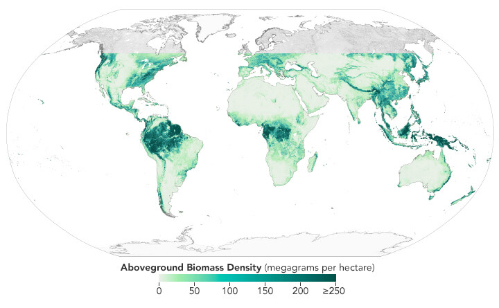 This map shows biomass density This map shows biomass density across GEDI’s observation area.