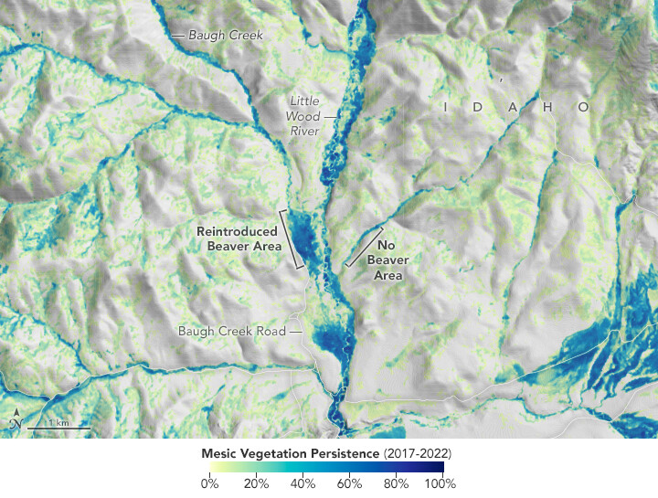 Plants are abundant along Baugh Creek, thanks to the ponded water from beaver dams.go.nasa.gov