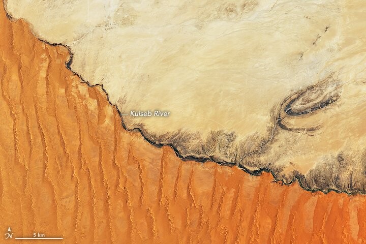 Which do you want to explore– the Rub’ al-Khali in the Arabian Peninsula (left) or Africa’s Namib Desert along the Kuiseb River (right)?