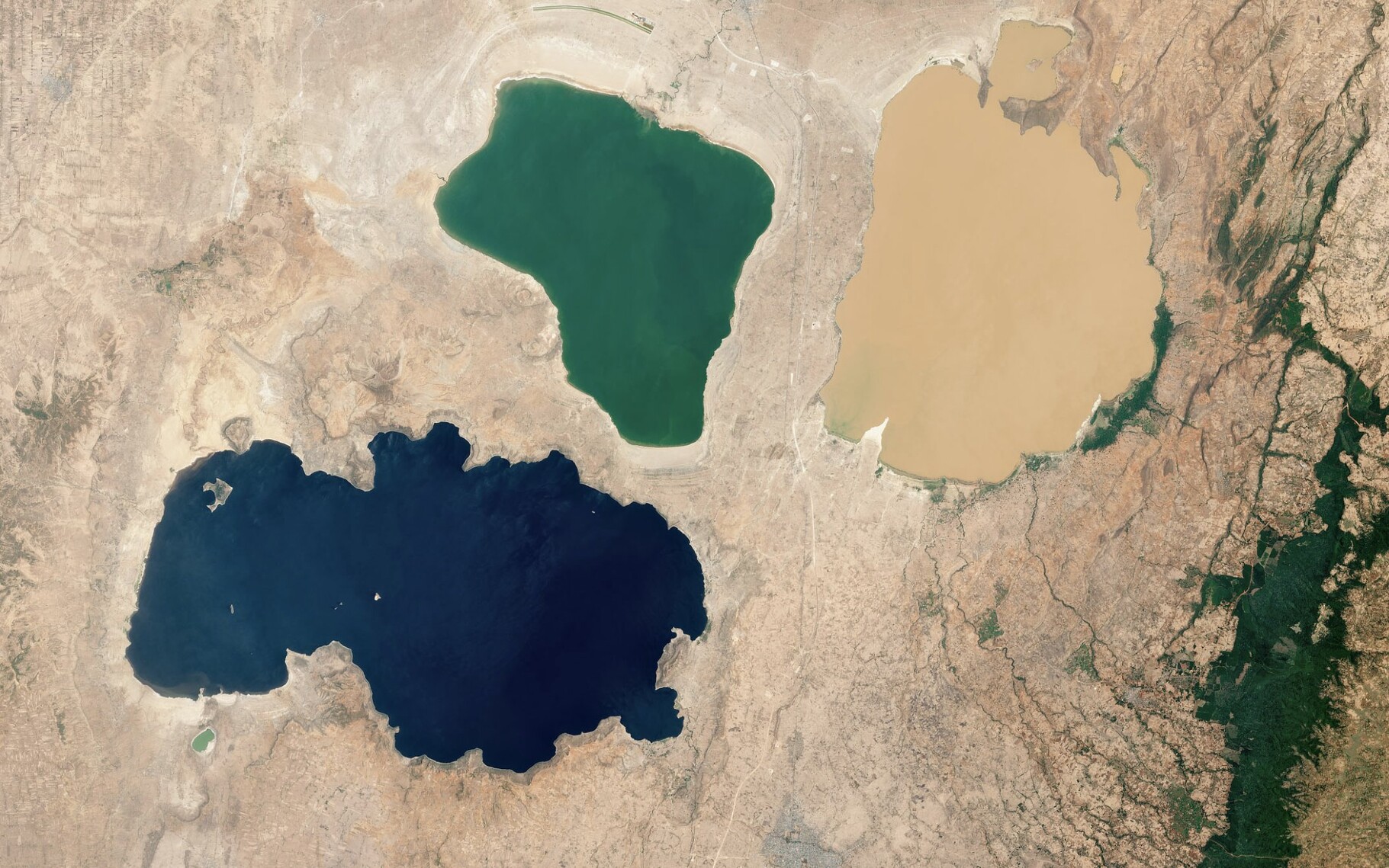 Which would you rather dive into – this trio of lakes in Ethiopia (left) or China’s Poyang Lake (right)?