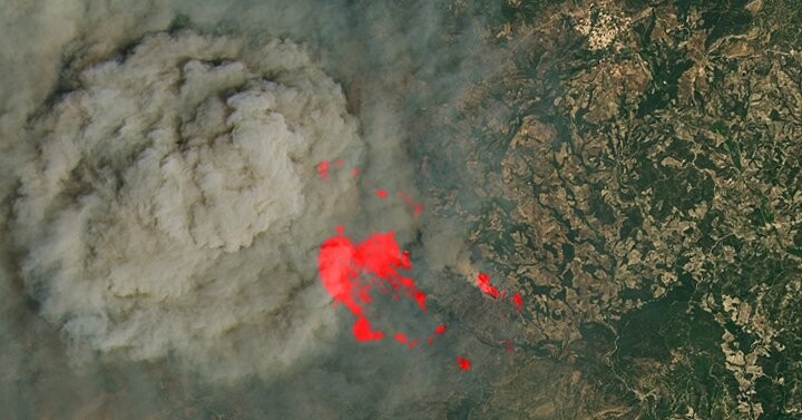 Actively burning fires are marked by a red infrared signature in this image captured by #Landsat 8 on July 19. go.nasa.gov/3Q8xwF2