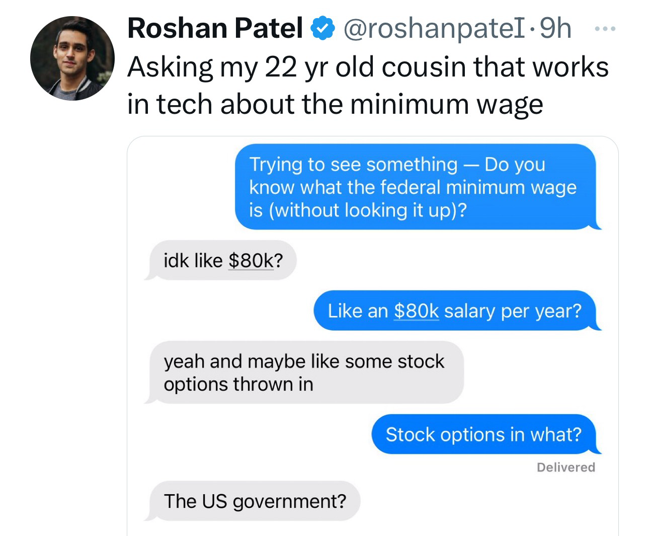 If true, and again still assuming it's a real conversation, just a bizarre response. What would stock options in government even mean?
