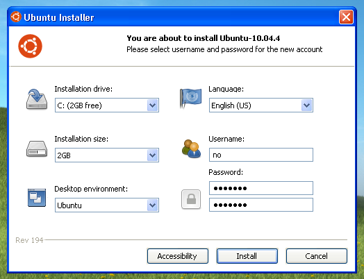 Wubi (2008-2012) - a tool that installs Ubuntu from inside Windows