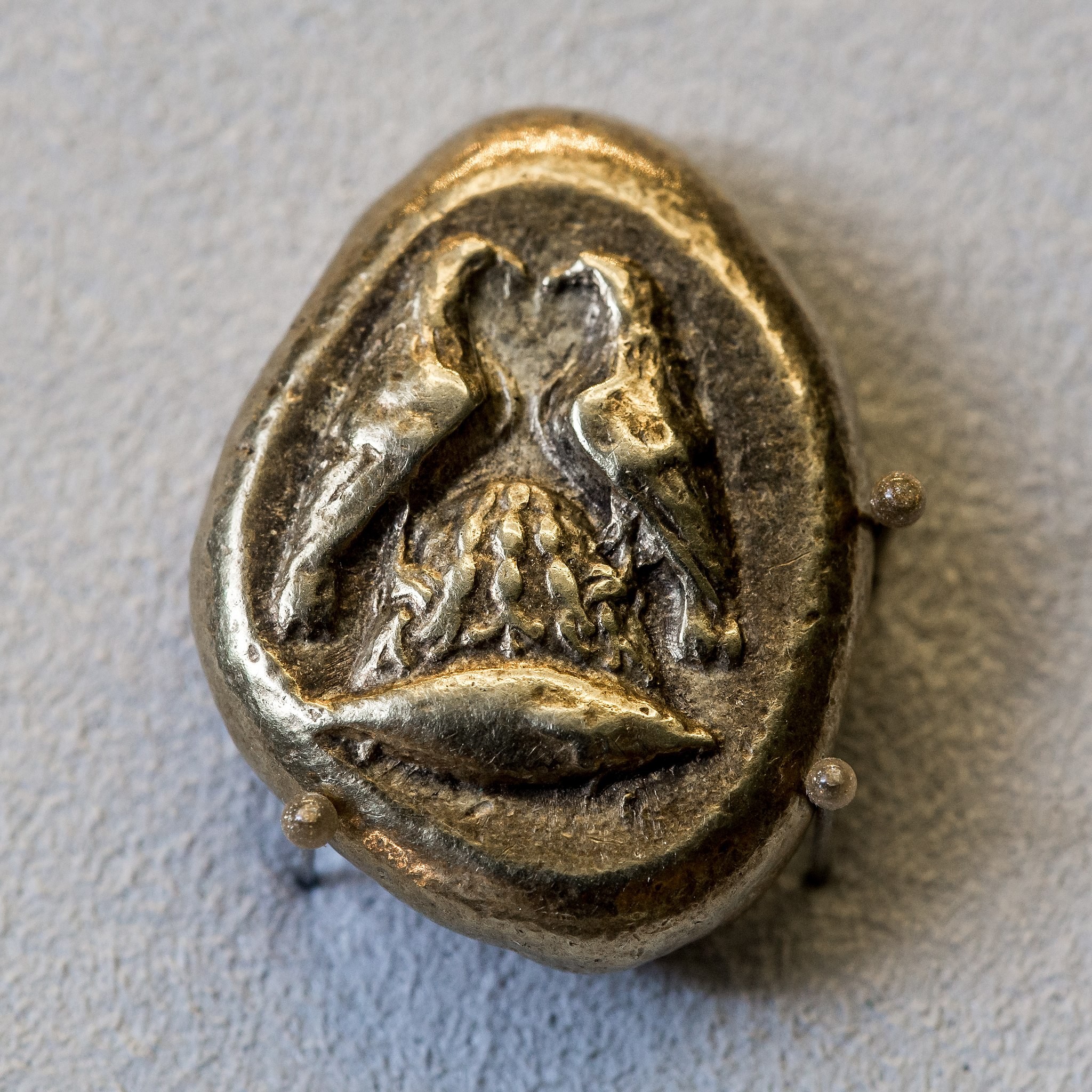 Two eagles on the omphalos. ArchaiOptix, CC BY-SA 4.0, via Wikimedia Commons.