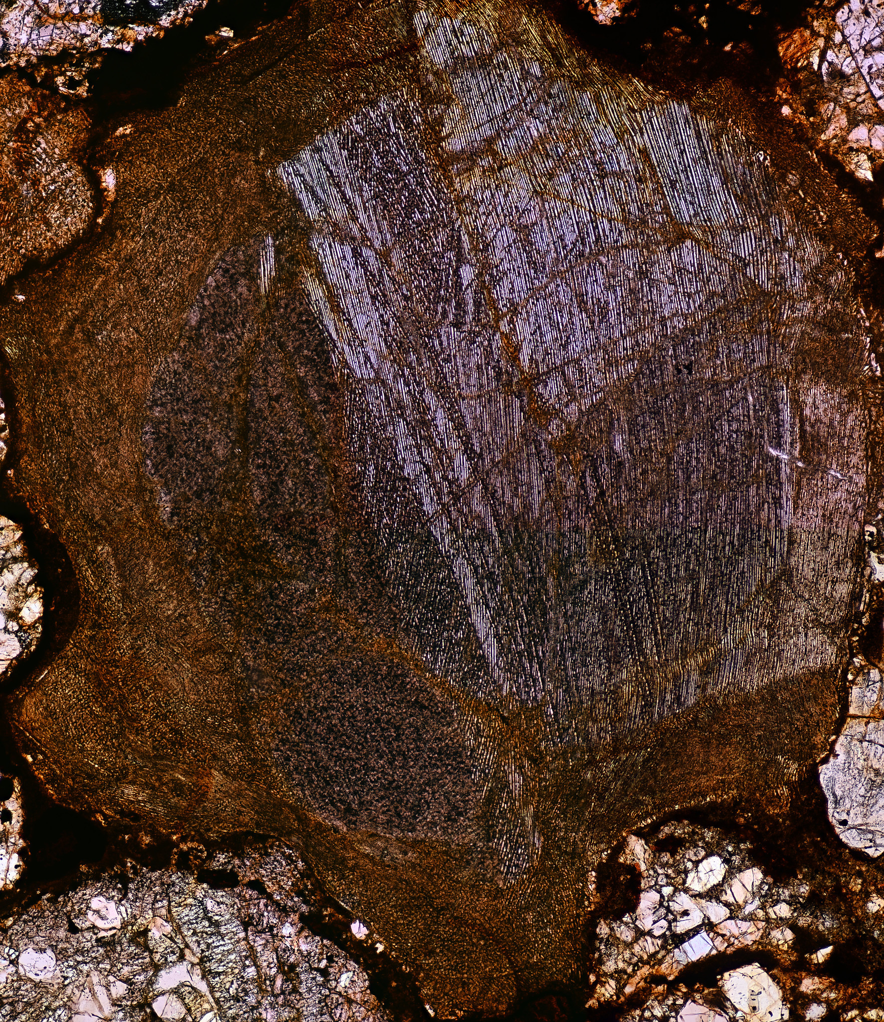 Microphoto of a thin section of the Northwest Africa (NWA) 2892 Meteorite.