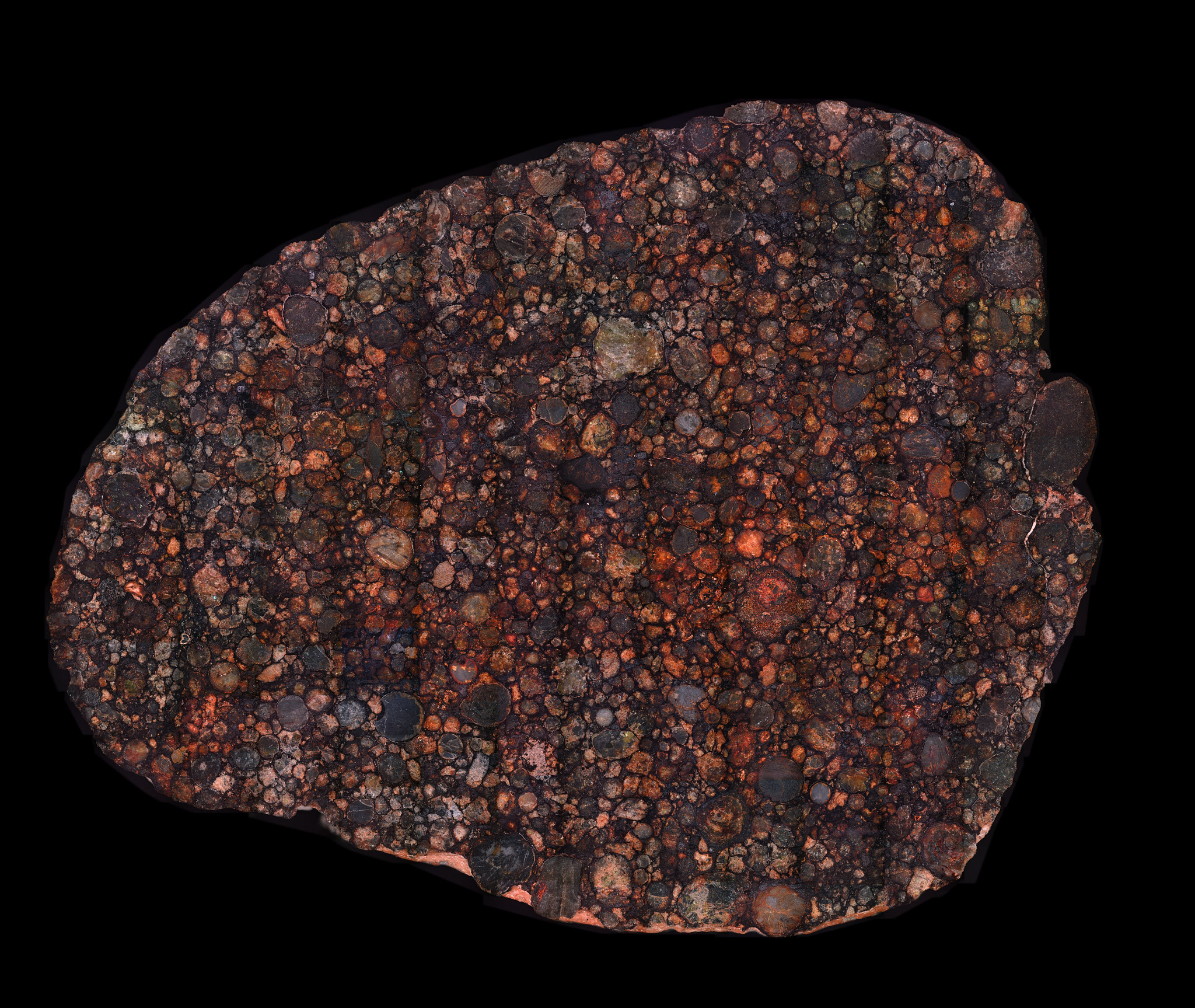 Microphoto of the Northwest Africa (NWA) 6472 Meteorite Surface of Slice.