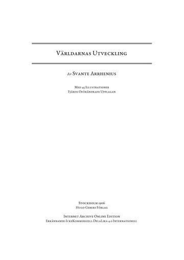 Världarnas Utveckling.Av Svante Arrhenius.Med 45 Illustrationer.Fjärde Oförändrade Upplagan.Stockholm, 1906.Hugo Gebers Förlag.Github.Internet Archive