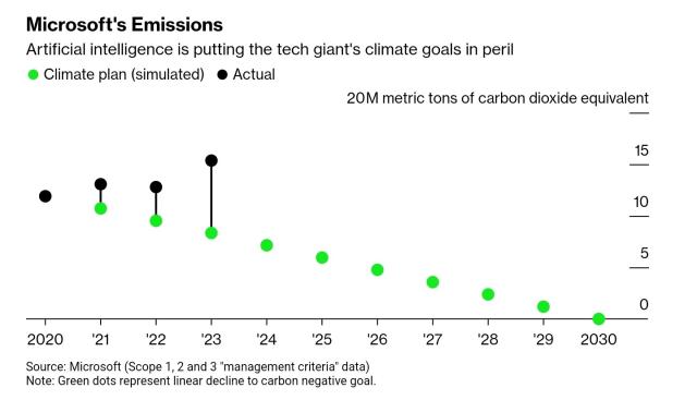 2023: Microsoft's emissions are 30% higher than in 2020.