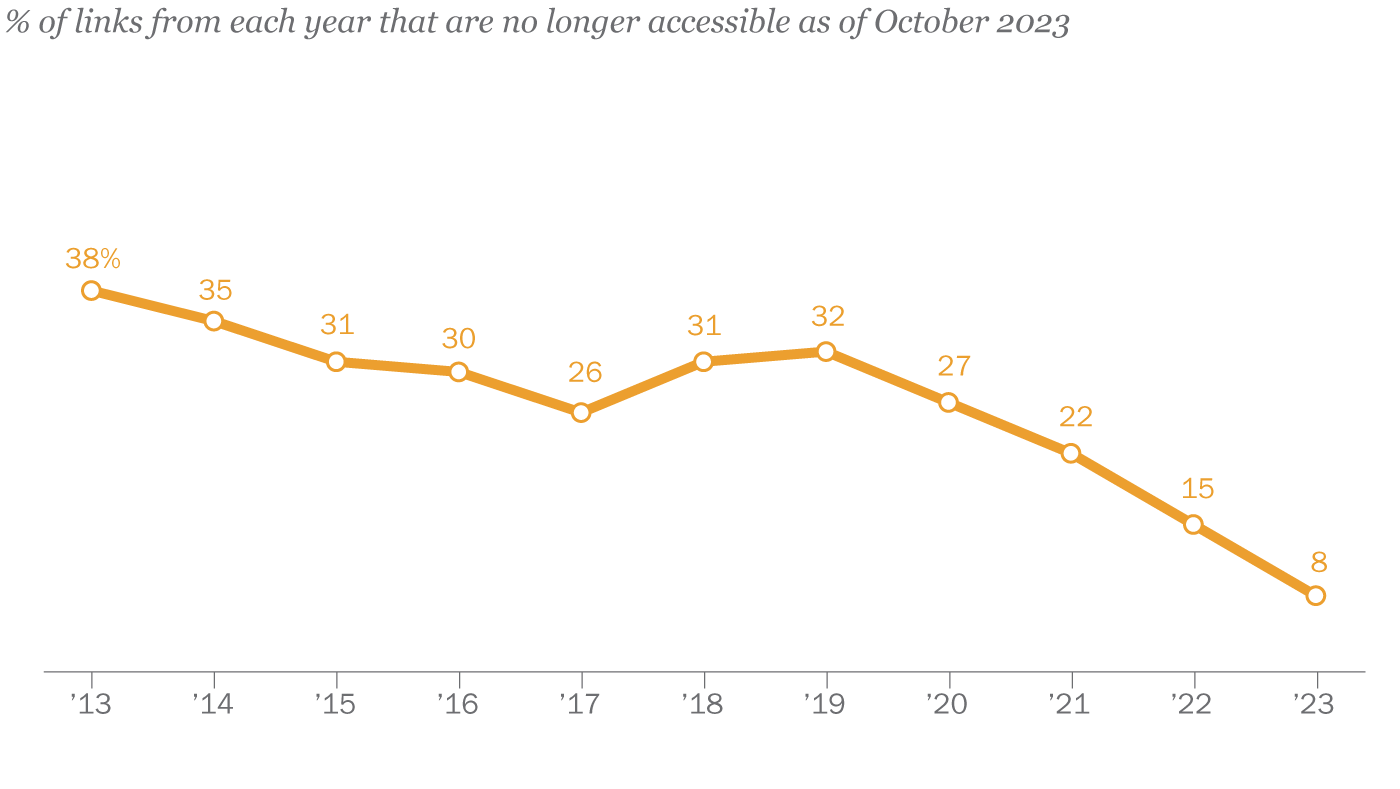 ❌ 38% of webpages that existed in 2013 are no longer accessible
