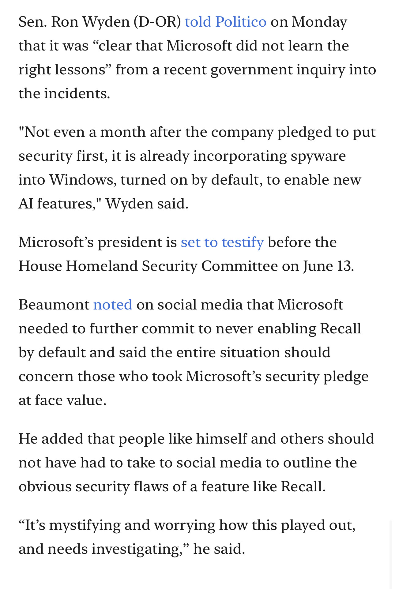 in reply to Kevin Beaumont • • •It’s going to be interesting to see how Microsoft get out of this one. They may have contractual commitments to ship Recall with external parties.