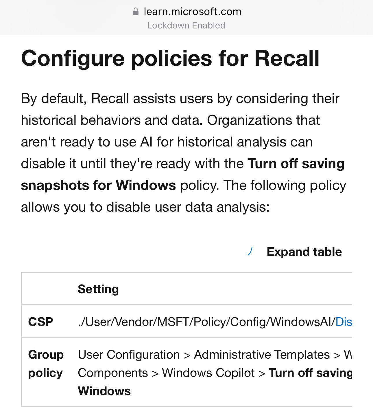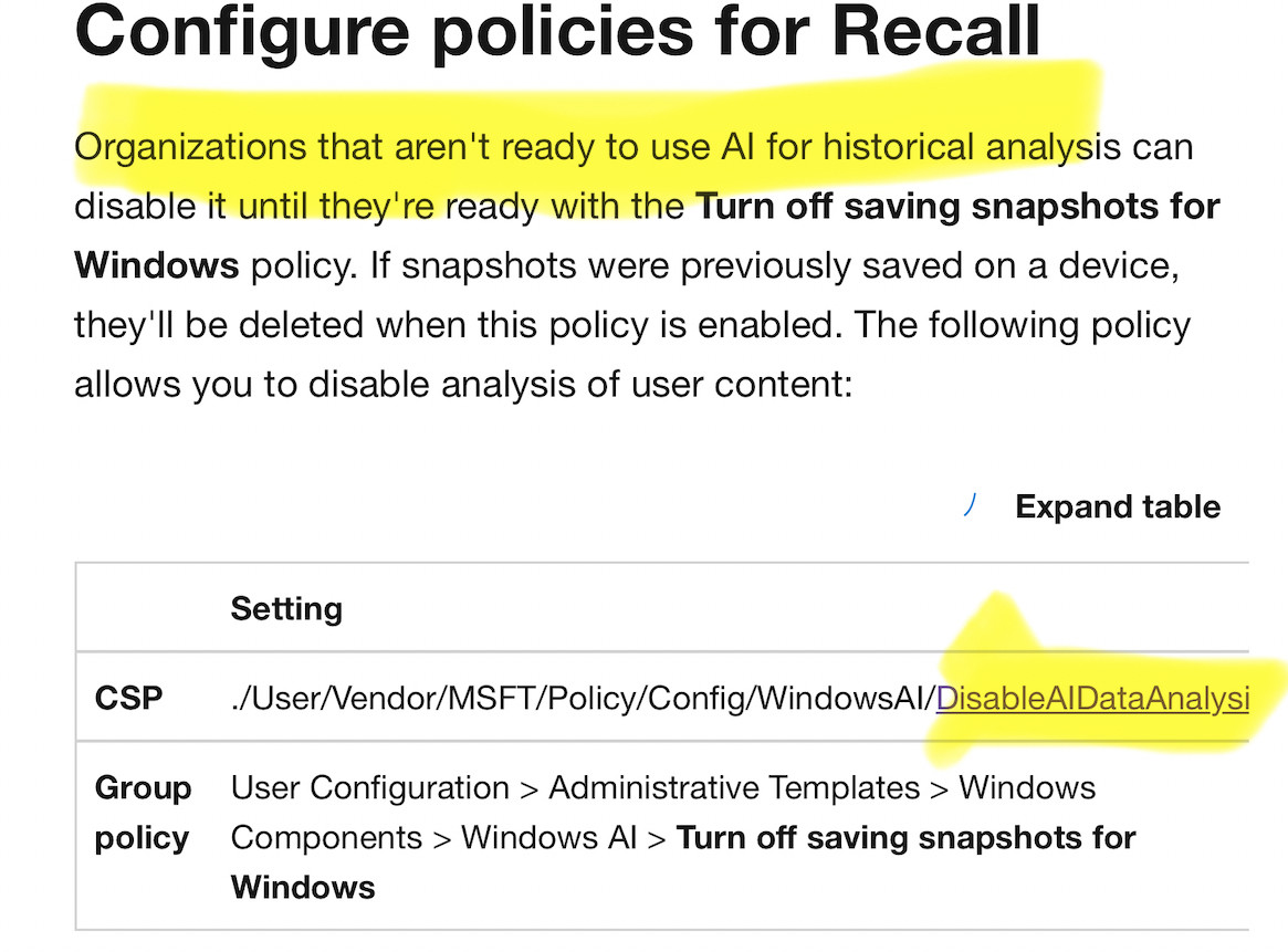 in reply to Kevin Beaumont • • •If you want to know how Microsoft have got themselves into this giant mess with Recall, here’s what the documentation says between the lines: