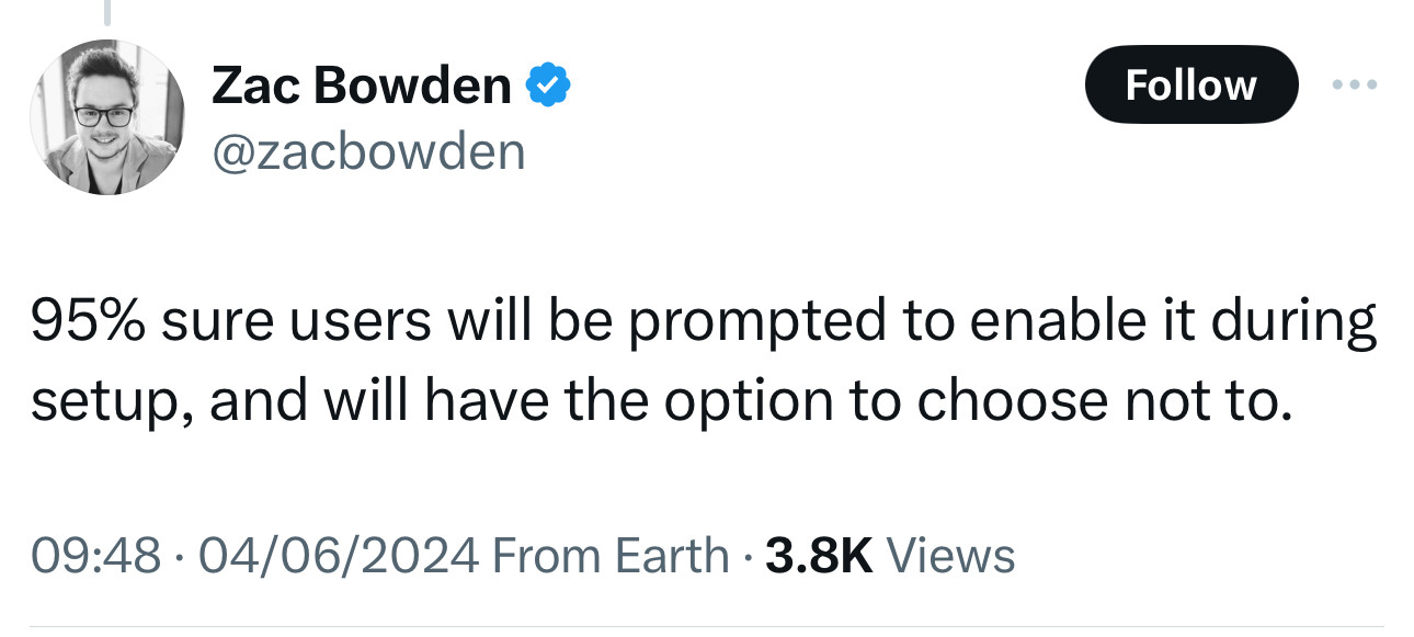 in reply to Kevin Beaumont • • •Microsoft reverses course, makes Recall feature opt-in only after security backlash