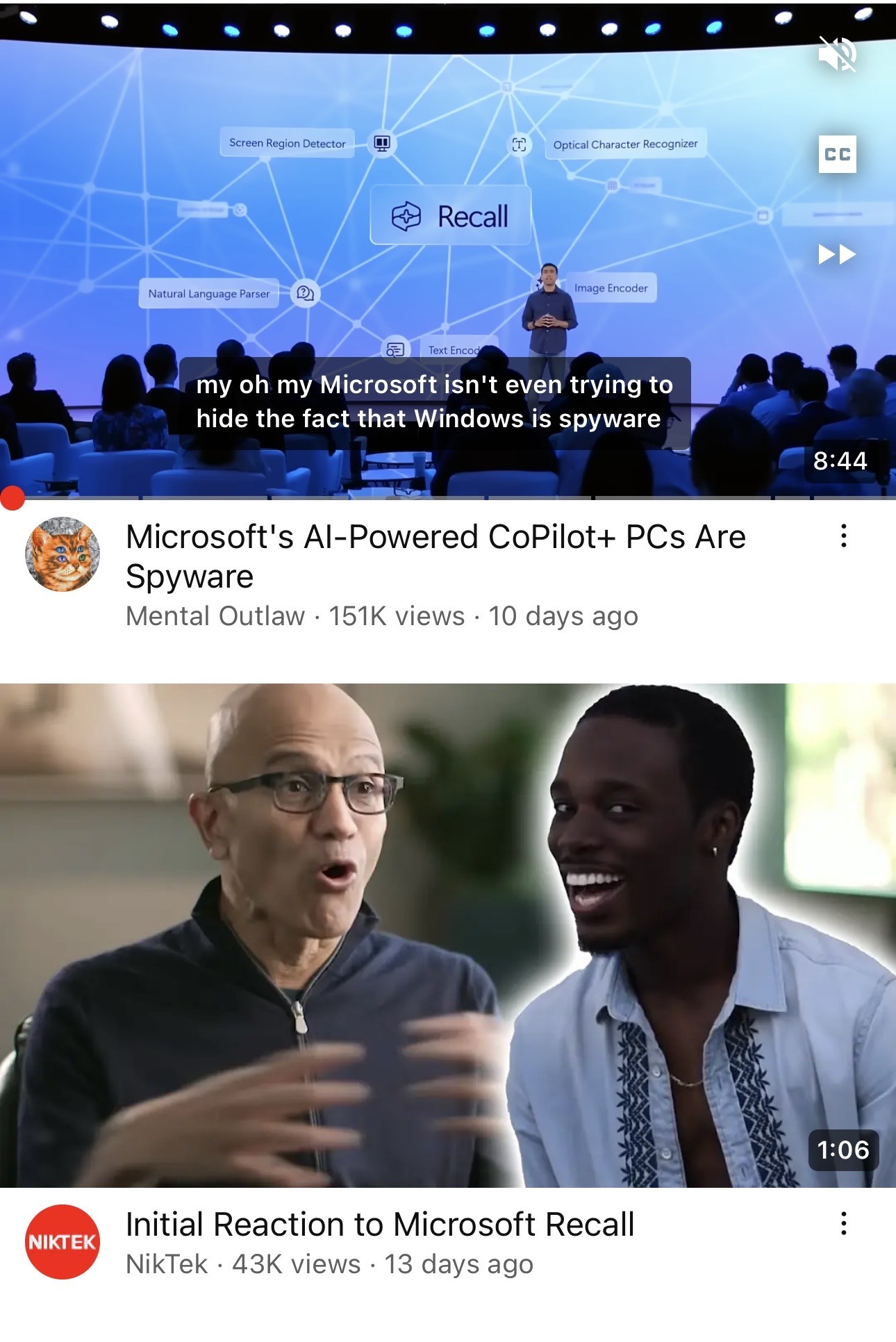 in reply to Kevin Beaumont • • •I went and looked at YouTube for Recall to get out of the echo chamber and I can only find one positive video. Even the people at the event are slating it, including people with media provided Copilot+ PCs.