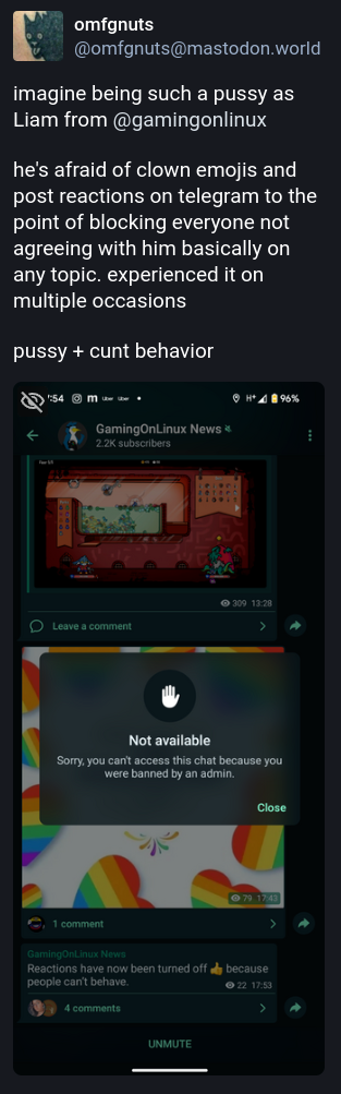 I don't talk a lot on mastodon usually, but as someone tangential to the queer community in a few ways, I'd like to thank you for standing up to this bullshit and doing what's in your power to fight the toxicity in the Linux community.