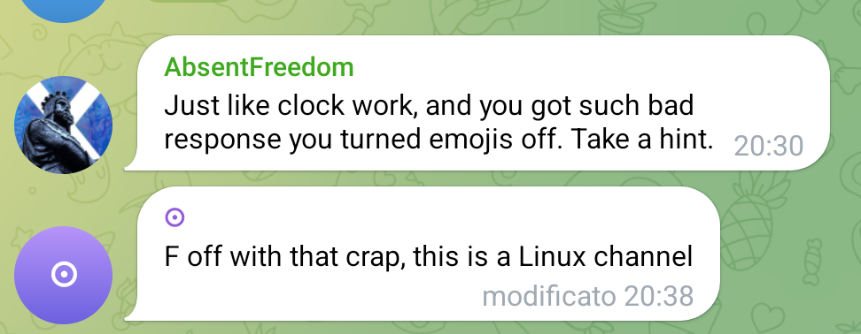 I don't talk a lot on mastodon usually, but as someone tangential to the queer community in a few ways, I'd like to thank you for standing up to this bullshit and doing what's in your power to fight the toxicity in the Linux community.