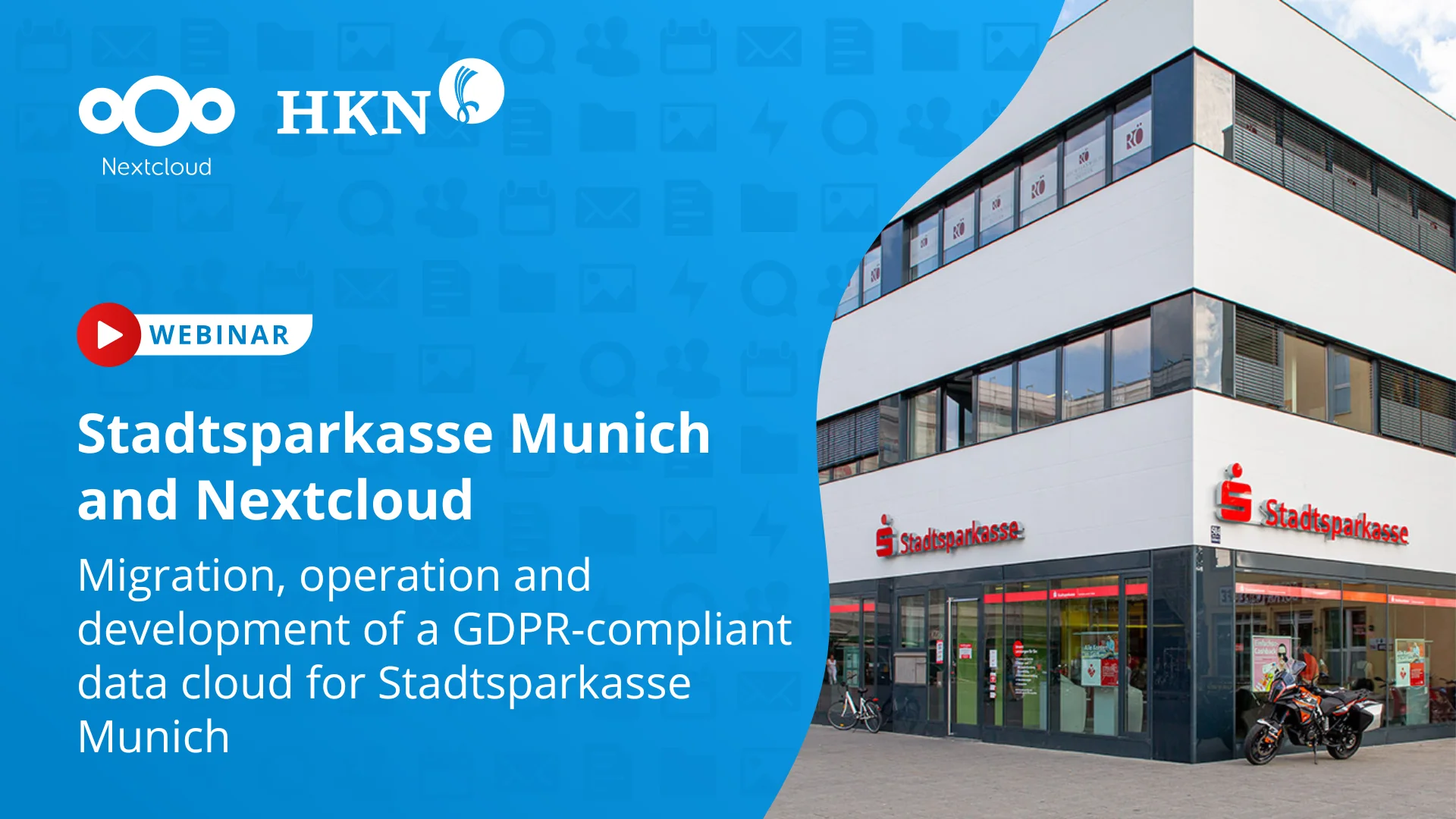 Join our webinar to learn how Stadtsparkasse Mรผnchen is migrating Nextcloud to a cloud-based environment while ensuring GDPR compliance.Nextcloud