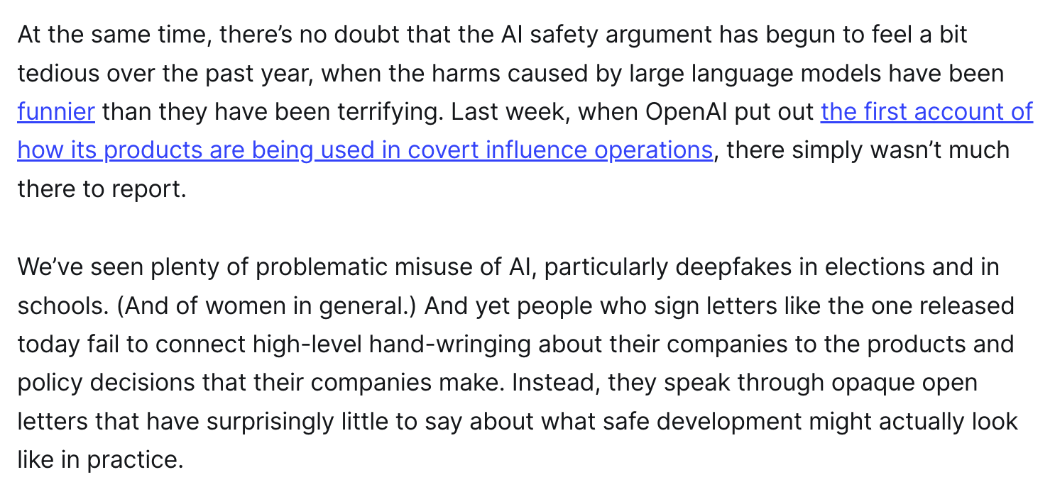 There's yet another open letter from the AI safety crowd. If they want more people to take them seriously, they need to get more specific