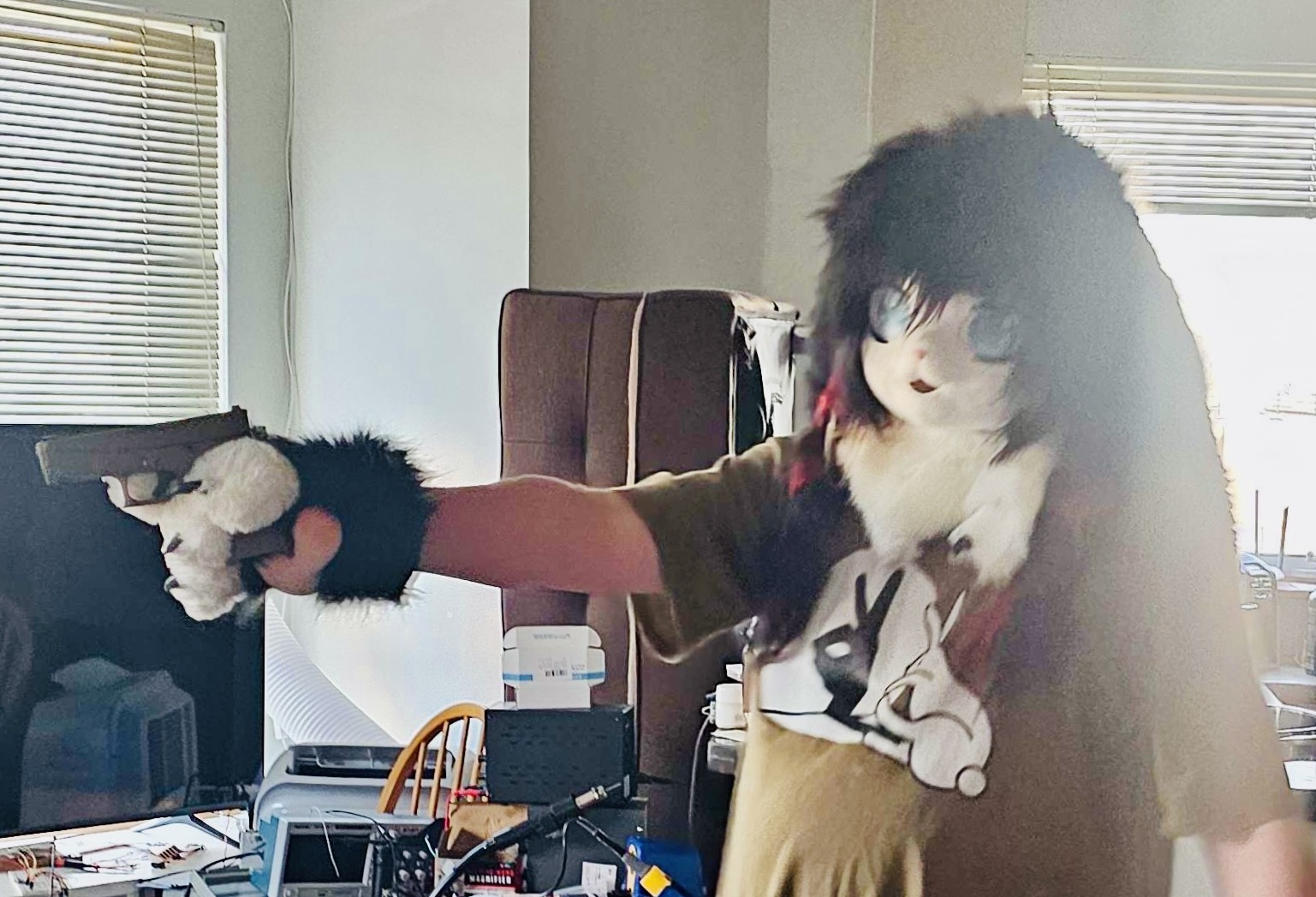 partial fursuit, prop gun