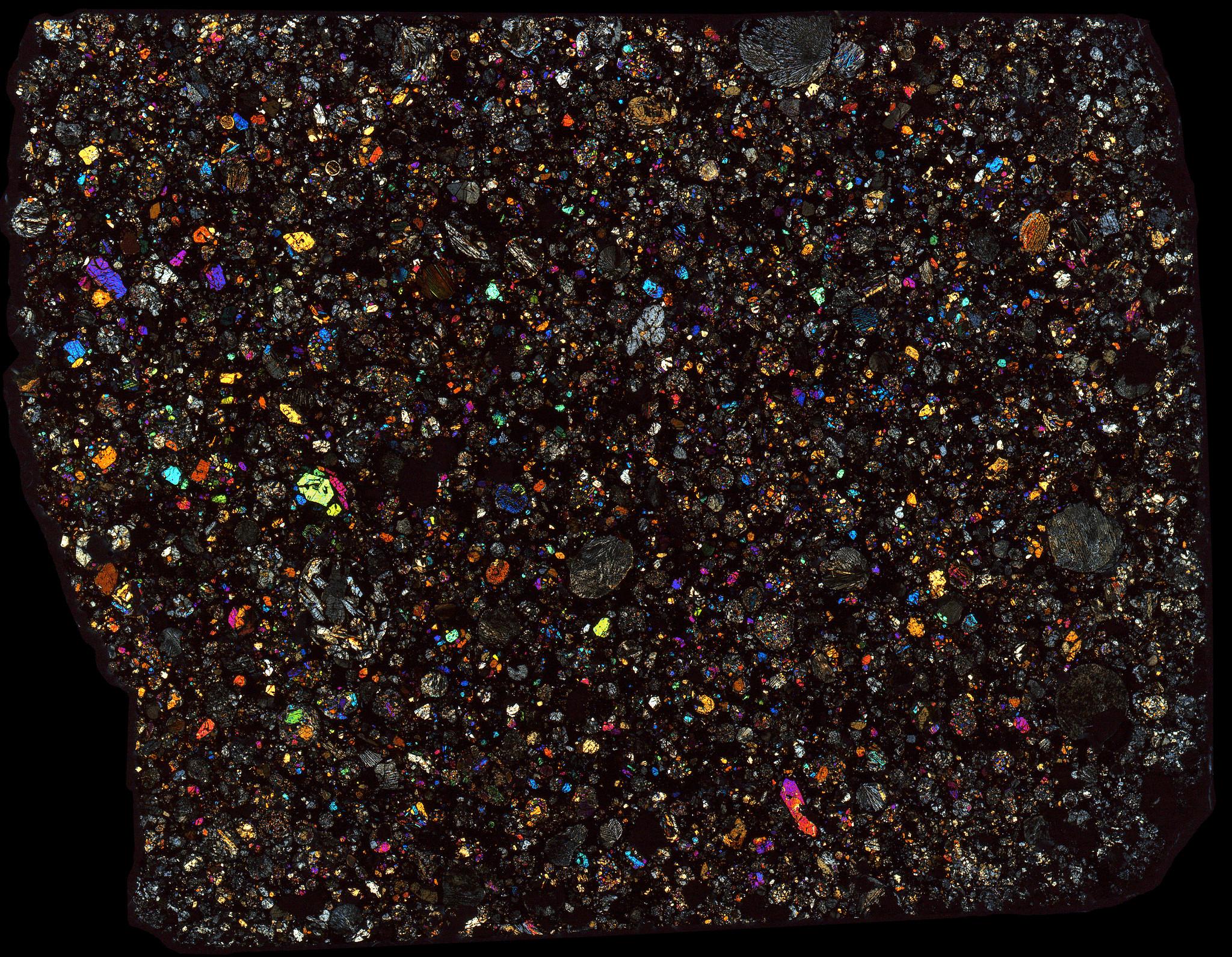 Northwest Africa (NWA) 3154 Meteorite Thin Section - XPL HDR Pathscan Enabler.