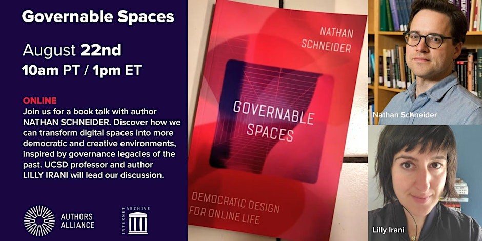On August 22, join me and the brilliant scholar-activist Lilly Irani for an event on my book Governable Spaces, hosted by the Internet Archive. Register here: eventbrite.com/e/book-talk-gov…