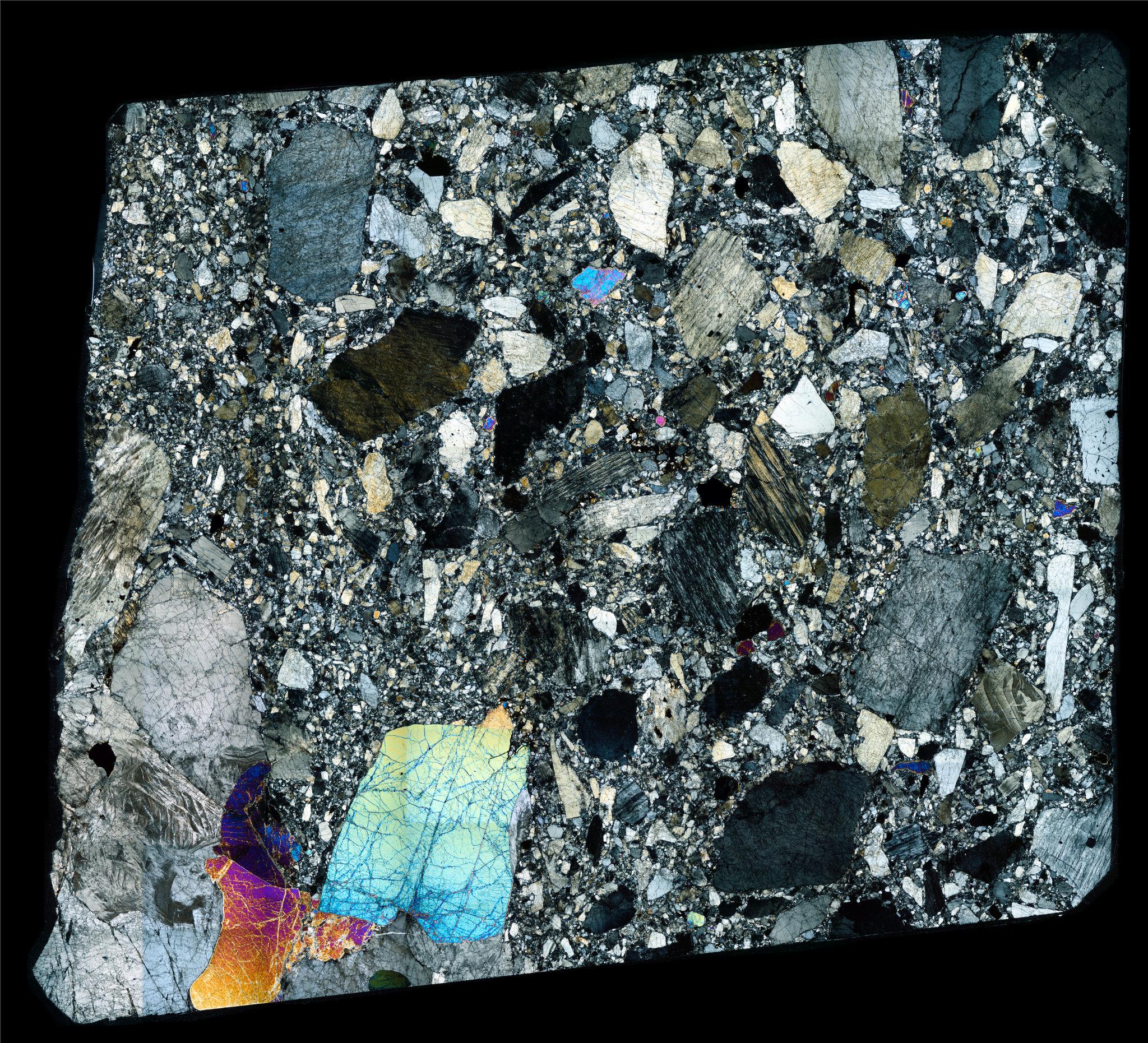 Thin Section of the Peรฑa Blanca Spring Meteorite in Cross Polarized Light.