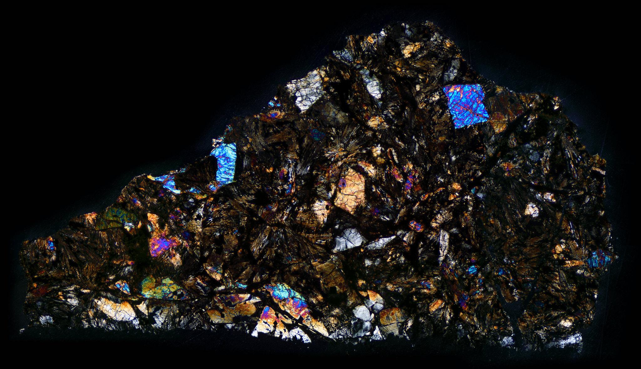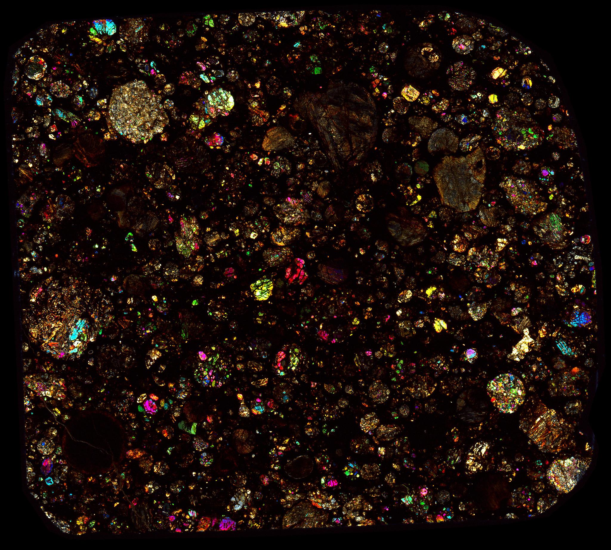 Northwest Africa (NWA) 10674 Meteorite Thin Section - XPL HDR Pathscan Enabler.