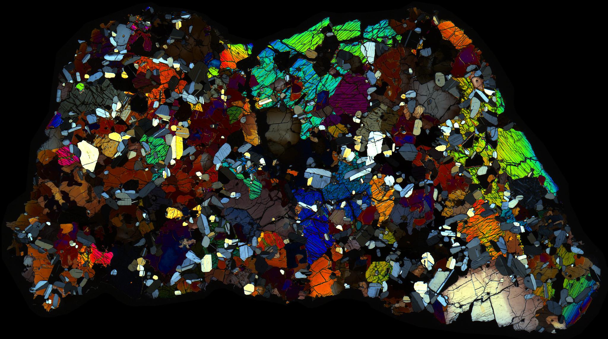 Northwest Africa (NWA) 4590 Meteorite Thin Section - XPL HDR Pathscan Enabler.