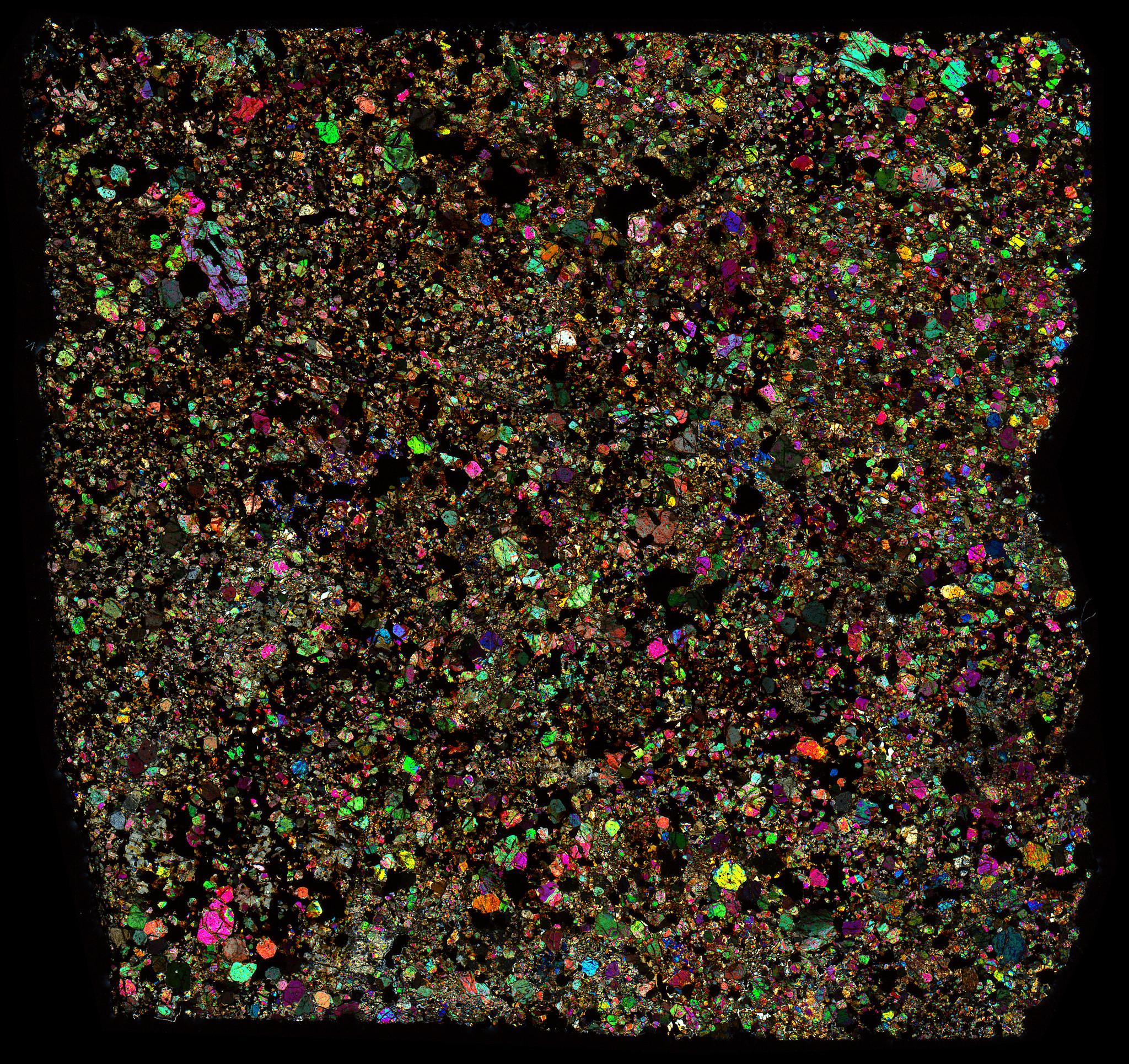 Northwest Africa (NWA) 4762 Meteorite Thin Section - XPL HDR Pathscan Enabler.