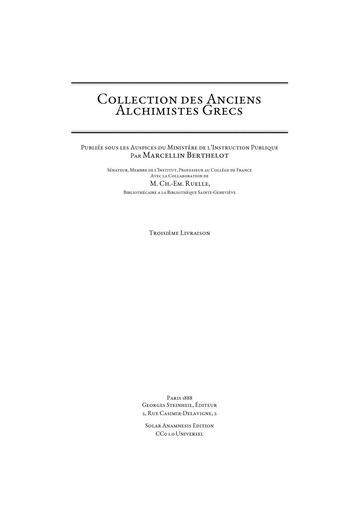 Collection des Anciens Alchimistes Grecs — Troisième Livraison : Marcellin Berthelot : Free Download, Borrow, and Streaming : Internet Archive