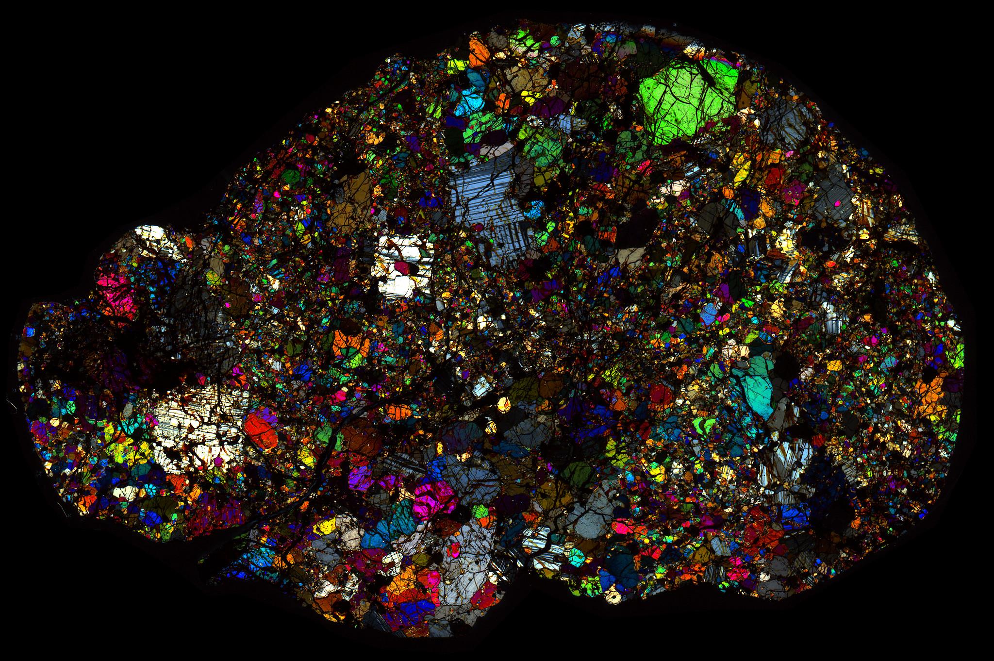 Northwest Africa (NWA) 4662 Meteorite Thin Section - XPL HDR Pathscan Enabler.