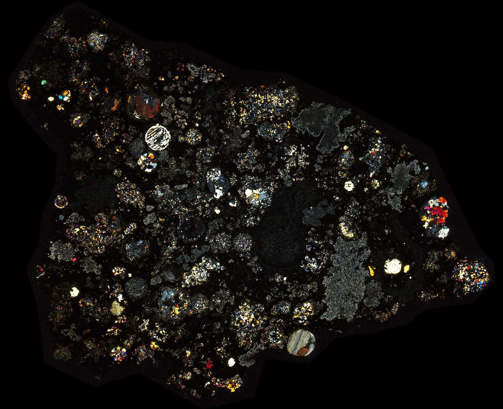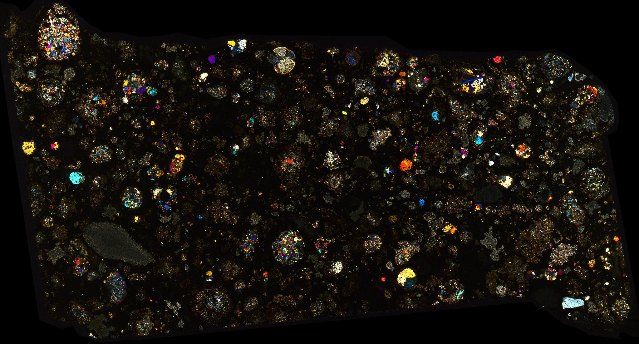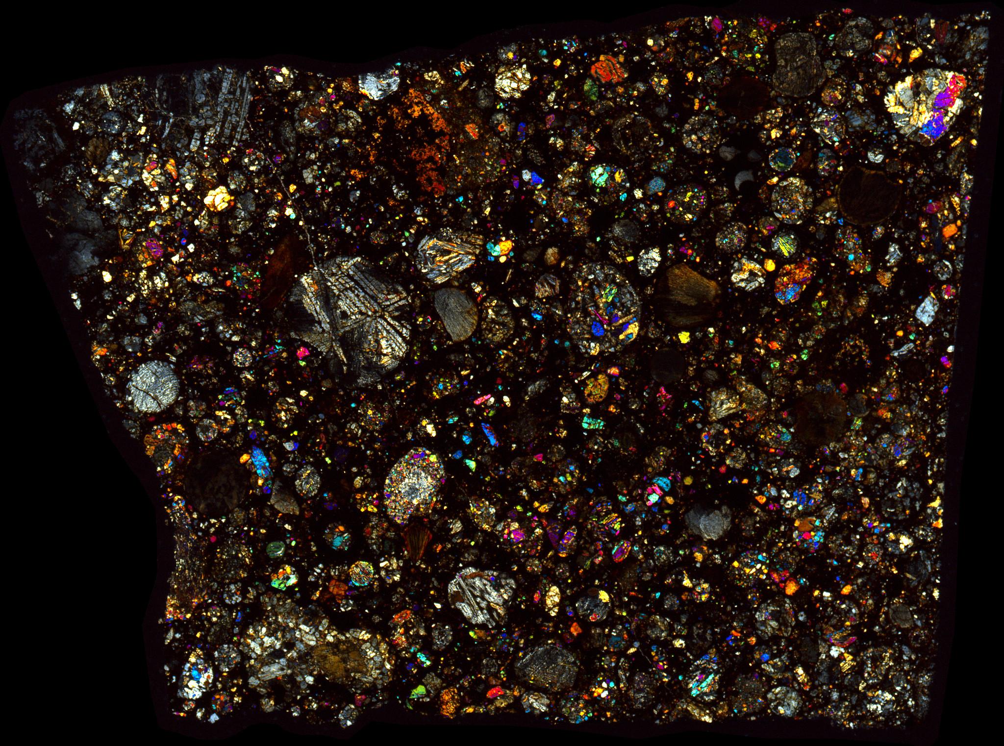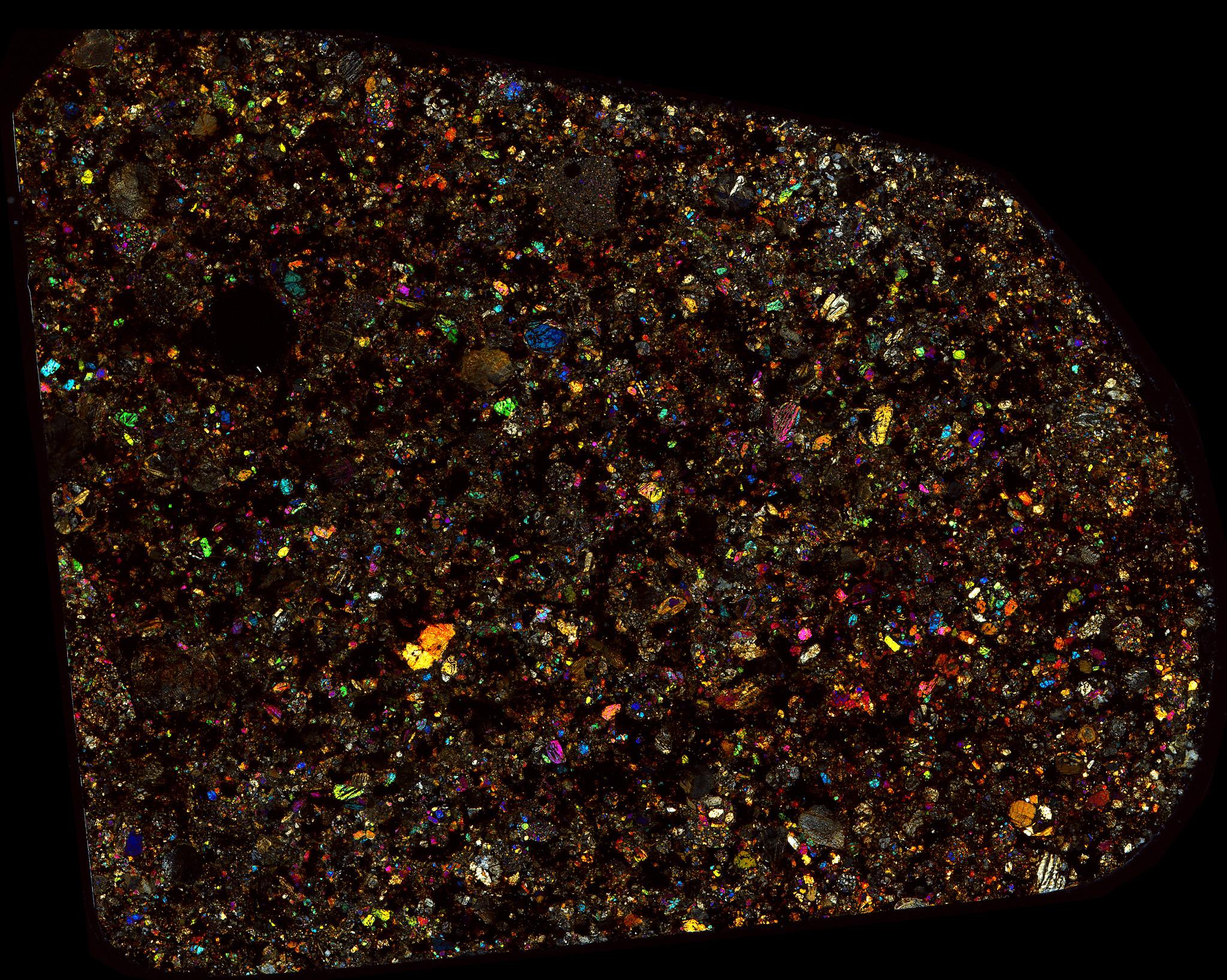 Northwest Africa (NWA) 10669 Meteorite Thin Section - XPL HDR Pathscan Enabler.