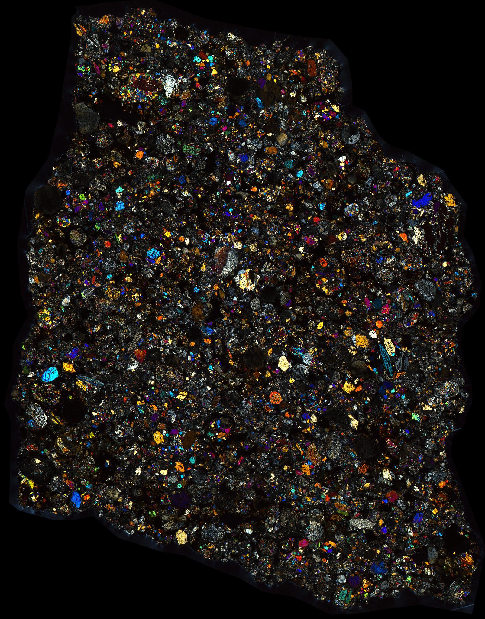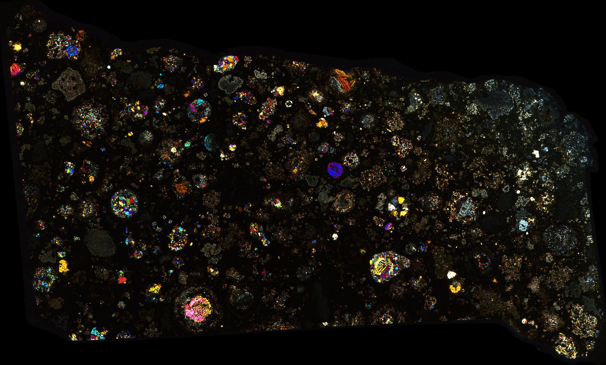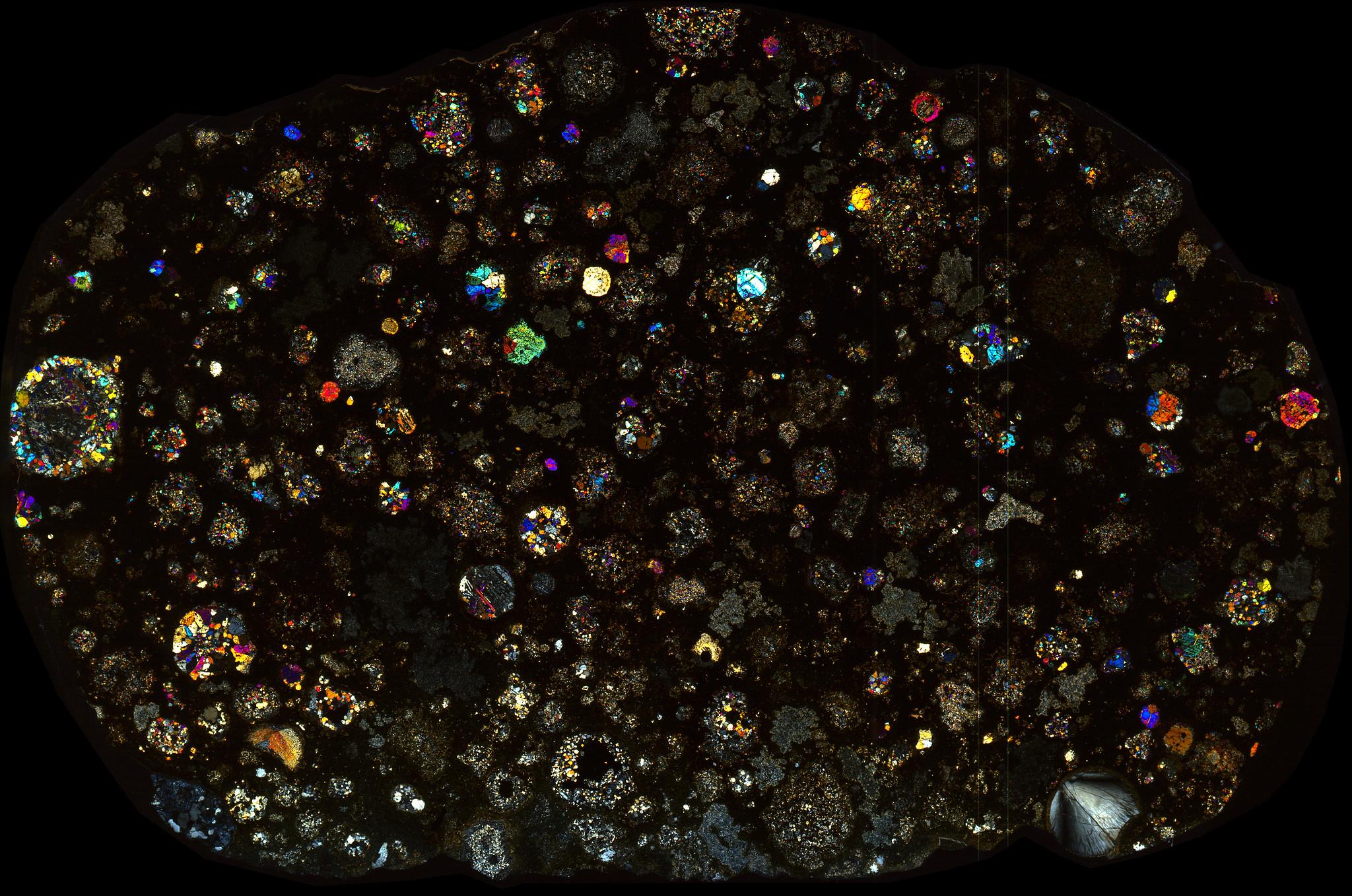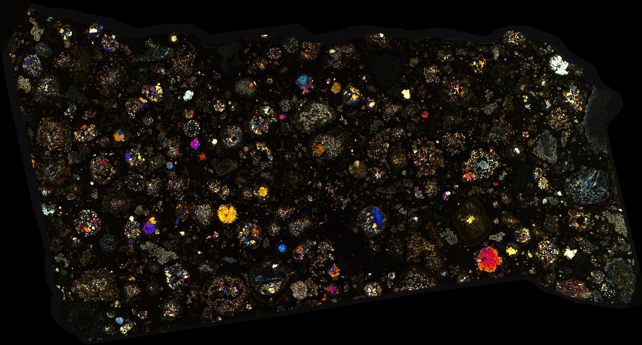 Northwest Africa (NWA) 10669 Meteorite Thin Section - XPL HDR Pathscan Enabler.