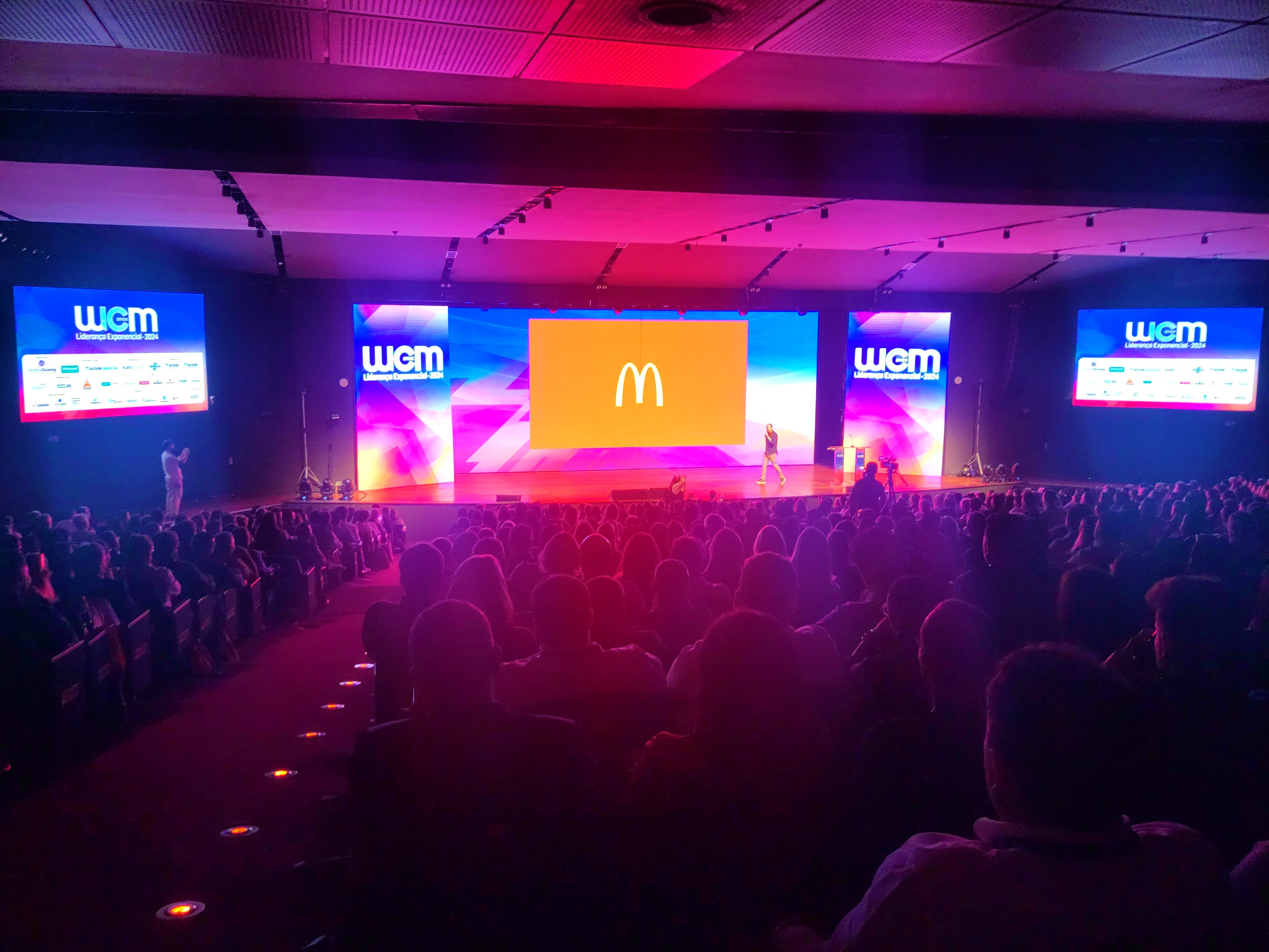 Greetings from the massive #WCM24 co-op conference in Belo Horizonte, Brazil, where for some reason we are all watching a McDonald's commercial. Former McDs exec giving an opening talk about giving purpose to your work. (?!)