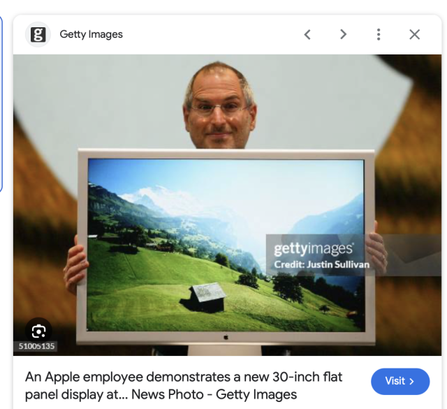 โ€œAn Apple employee demonstrates a new 30-inch flat panel displayโ€