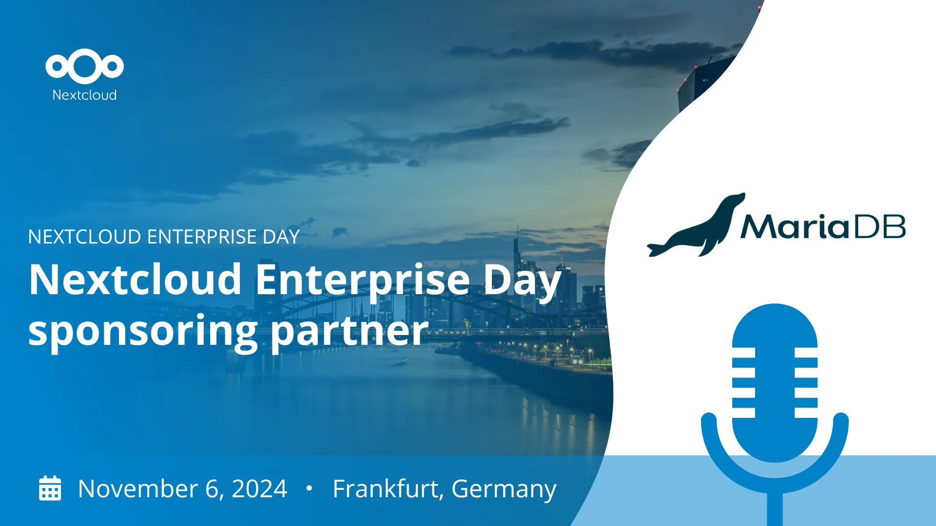 Exciting news: MariaDB partners as a new sponsor of Nextcloud Enterprise Day 2024 in Frankfurt 🌎