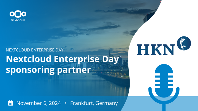 HKN GmbH has joined the Nextcloud Enterprise Day 2024 sponsor lineup, and we couldn't be more excited! Learn more in this blog.Mikhail Korotaev (Nextcloud)
