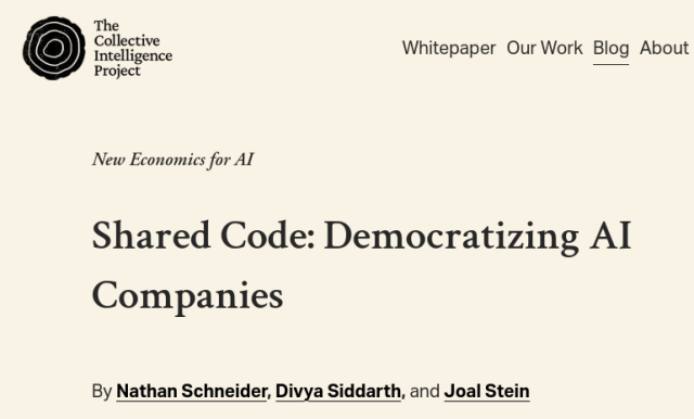 The Collective Intelligence Project has been doing incredible work lately with bringing democratic practices to AI, incl. w/ OpenAI and Anthropic. I've joined them to take this work one step further: bringing democracy into companies themselves.