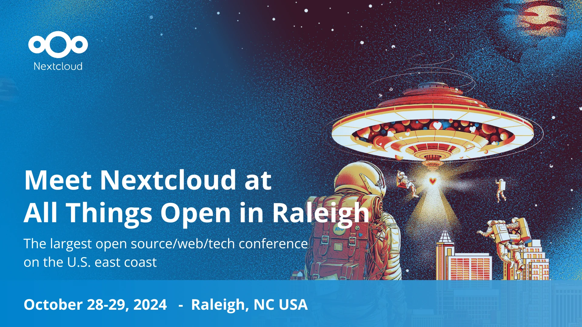 Meet us at All Things Open in Raleigh, NC USA We are delighted to showcase and discuss our latest release, Nextcloud Hub, at All Things Open 2024. There we will showcase the latest capabilities of Nextcloud Hub.Nextcloud