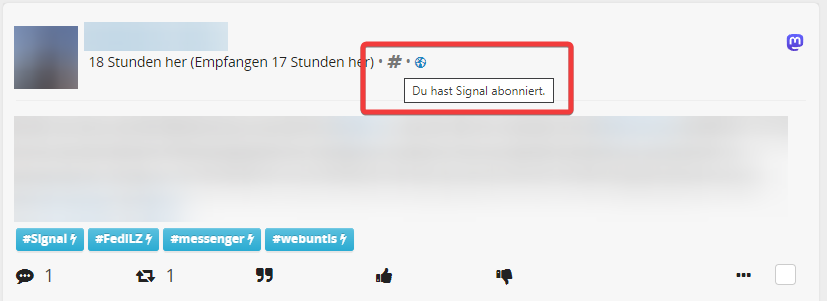 Ich würde es gut finden, wenn in den Beiträgen neben dem Hashtag auch der Text stehen würde, der aktuell sichtbar ist, wenn man mit der Maus drüber fährt.