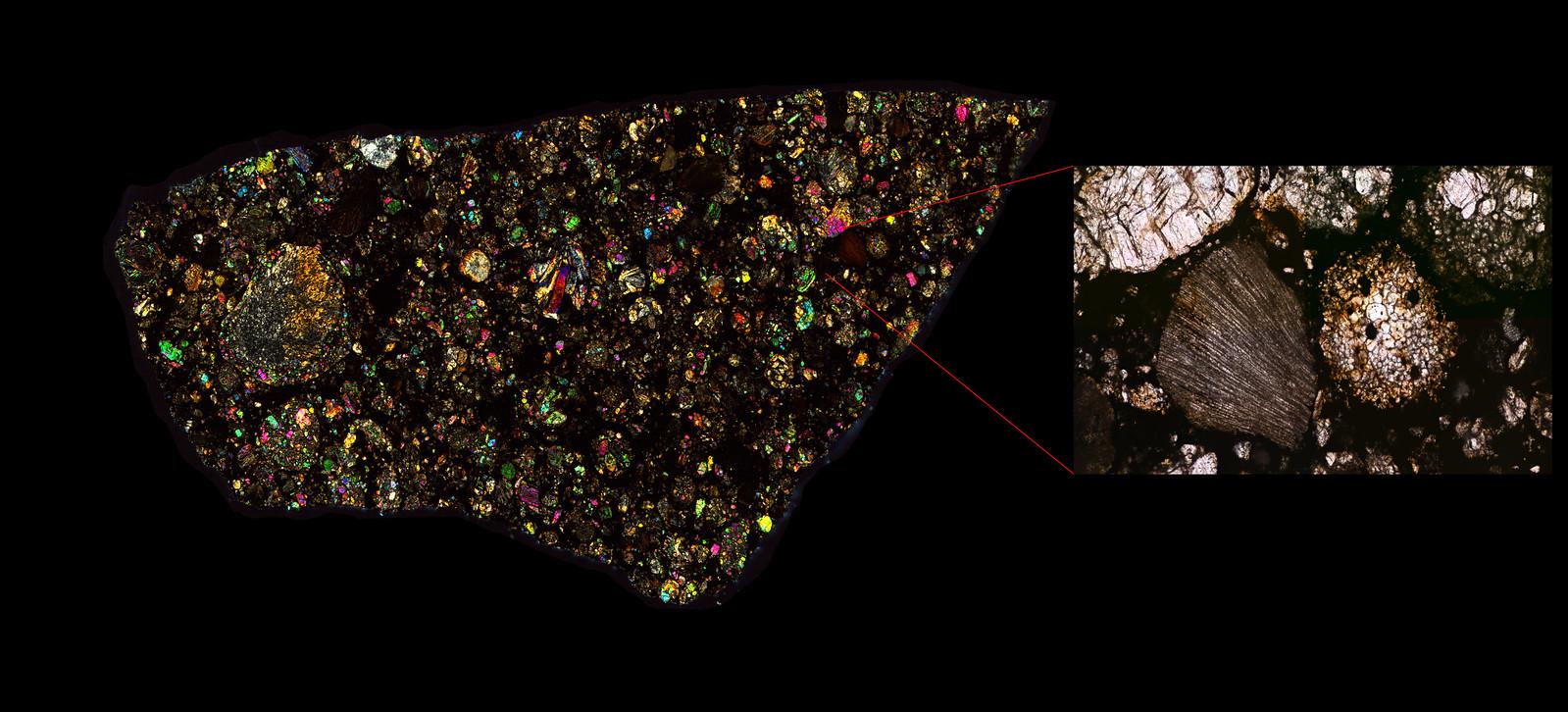 Northwest Africa (NWA) 10203 Meteorite Thin Section - XPL HDR Pathscan Enabler.