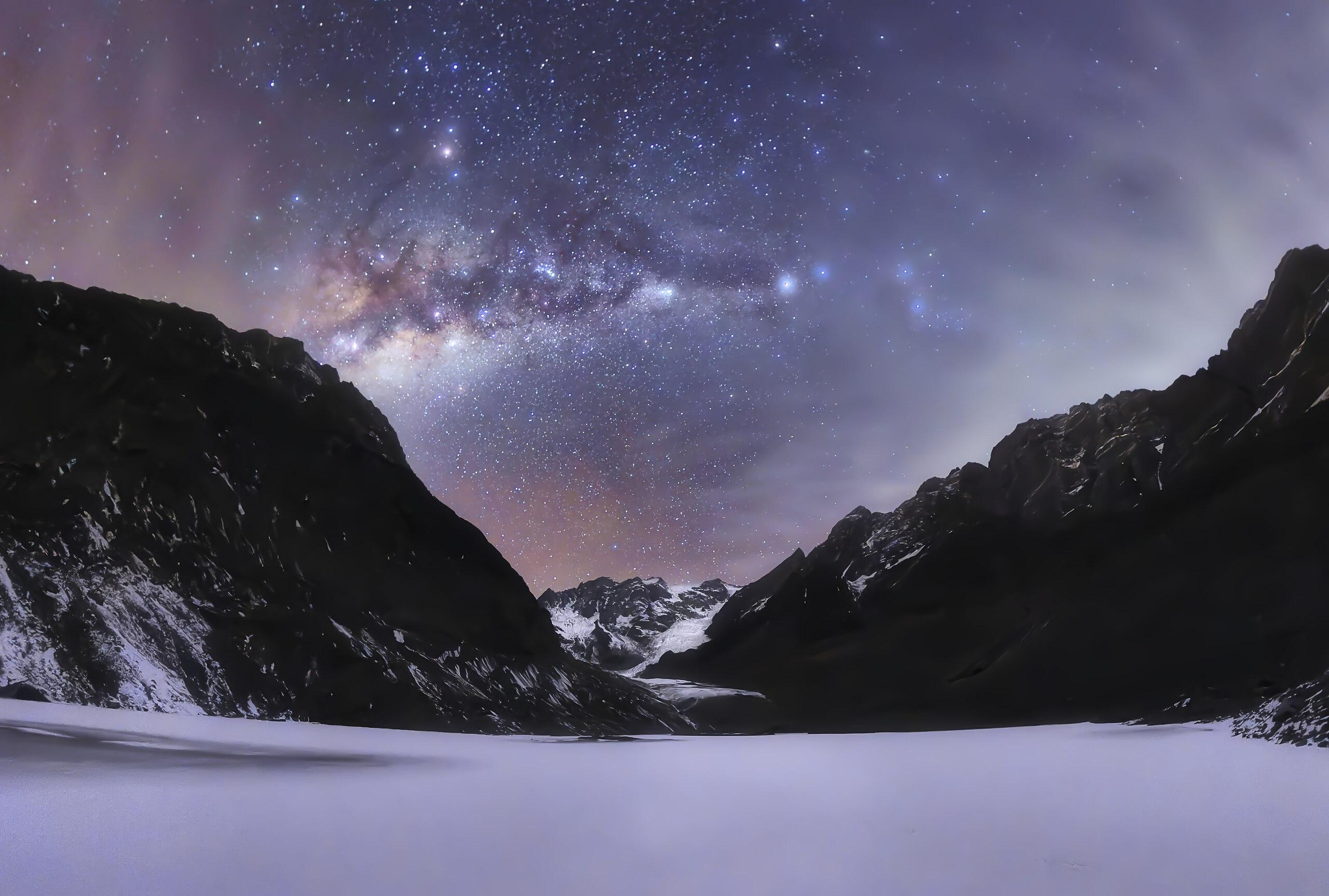"Milky way over Glaciar Juncal - Los Andes, Chile."