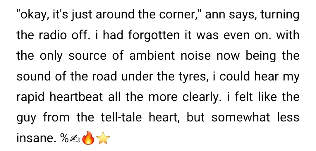 i cannot tell you how funny it is to read a stupid line from one of my old romantic stories followed by an ironic comment with an emoji representation of the fucking "writing fire" meme