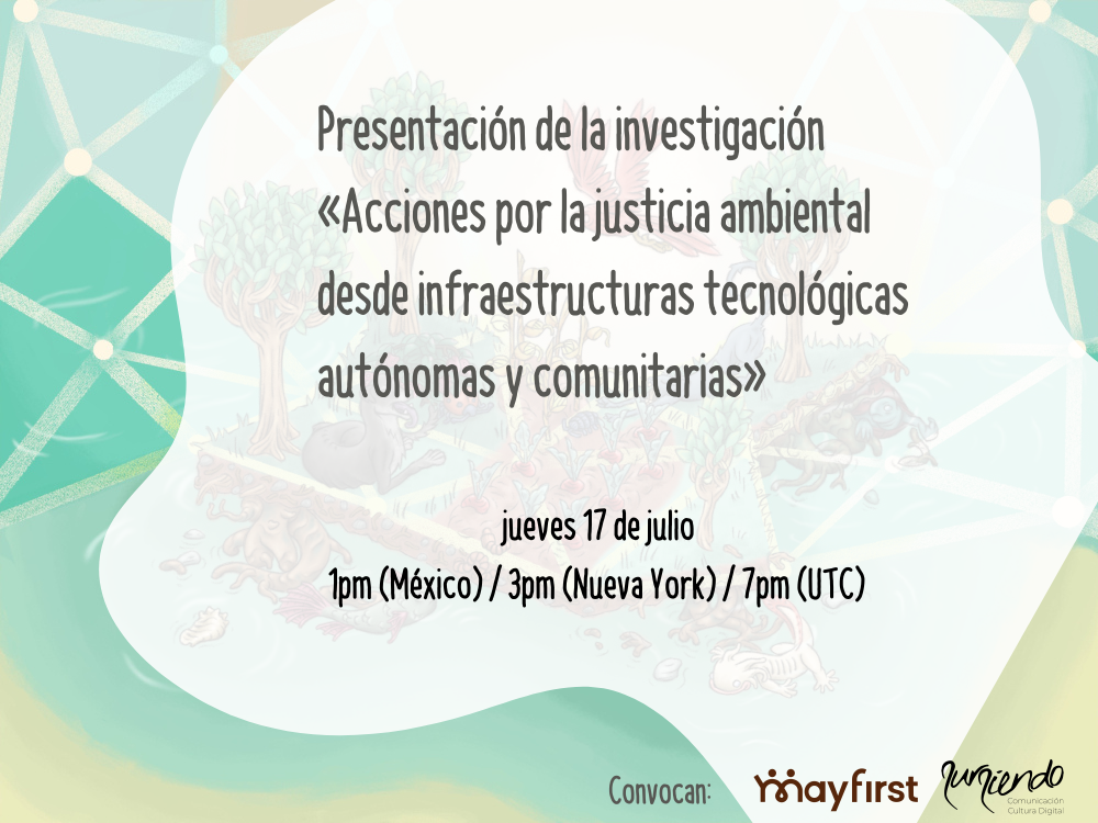 ๐ข Con emociรณn les compartimos la investigaciรณn: Acciones por la justicia ambiental desde infraestructuras tecnolรณgicas autรณnomas y comunitarias, resultado de conversaciones e intercambios con 17 grupos que mantienen servicios para proyectos sociales.